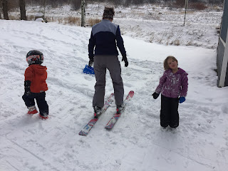 And here is Audrey getting set to do her first ski "race": the Soda Pop Slalom. She was mostly in it for the goodie bag and was giving herself pep talks that "I don't really have to go fast".